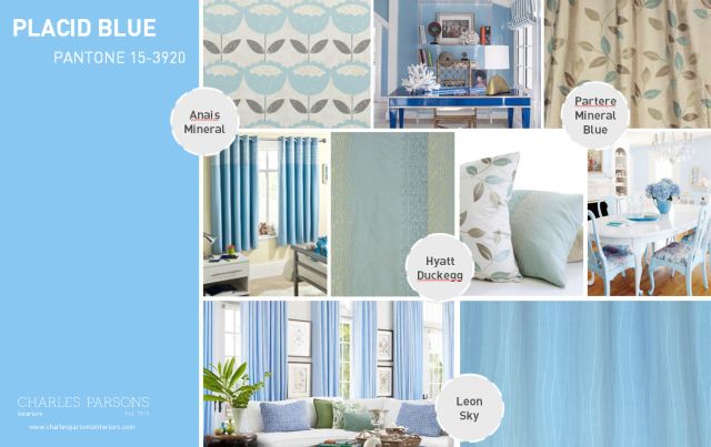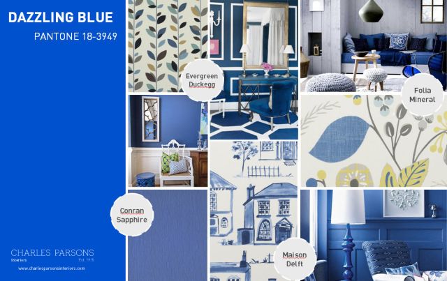 Farbou jarnej sezóny 2014 je oslňujúca modrá (Dazzling blue). Tento sivo-kobaltový odtieň modrej je odvážna voľba s nádychom „preppy“ štýlu. Skvelým spôsobom ako preniesť túto farbu do interiéru, je jej správna kombinácia s bielou, napríklad vo forme potlače na závesoch, posteľnej bielizni, či tapetách.