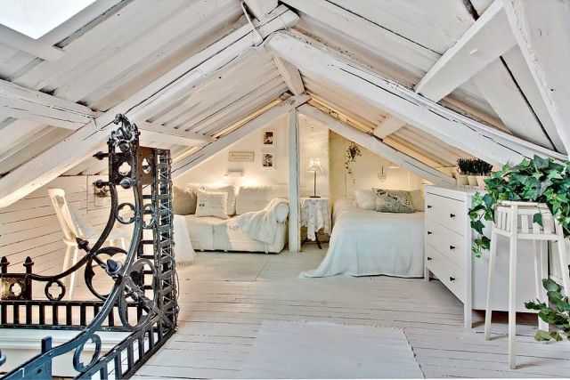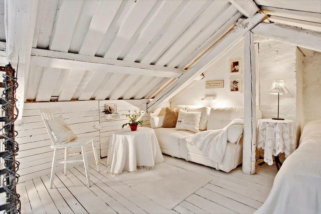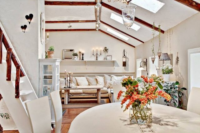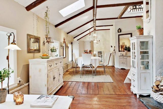Zariadenie na tomto poschodí je ladené v romantickom štýle „shabby chic“.