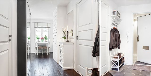 V chodbe s predsieňou opäť dominuje biela farba, ktorá opticky zväčšuje priestor. Drevená podlaha tu plynulo prechádza do kamennej dlažby.
