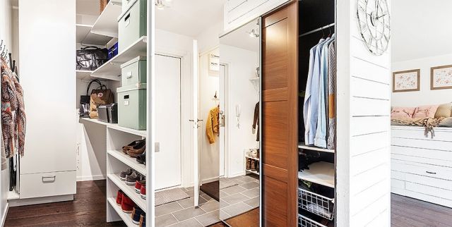 Za posuvnými dverami v predsieni sa nachádza obrovská šatníková skriňa, ponúkajúca dostatok úložného priestoru. A toho veru nikdy nie je dosť.