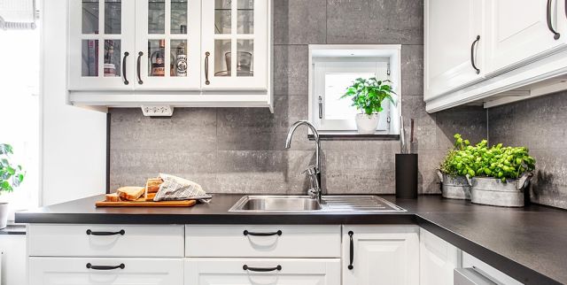 Zrenovovaná kuchyňa s nadčasovými materiálmi pôsobí príjemným dojmom.