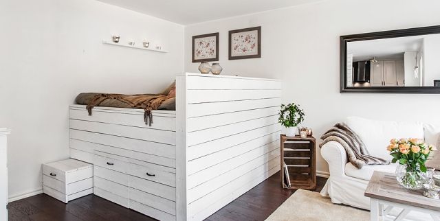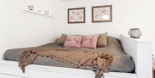 Originálnym spôsobom je riešený aj vyvýšený spací kút, pod ktorým sa ukrýva úložný priestor.